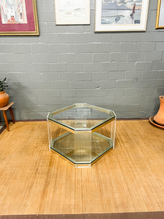 Vintage Octagon Brass and Perspex Glass Coffee Table