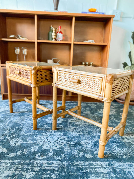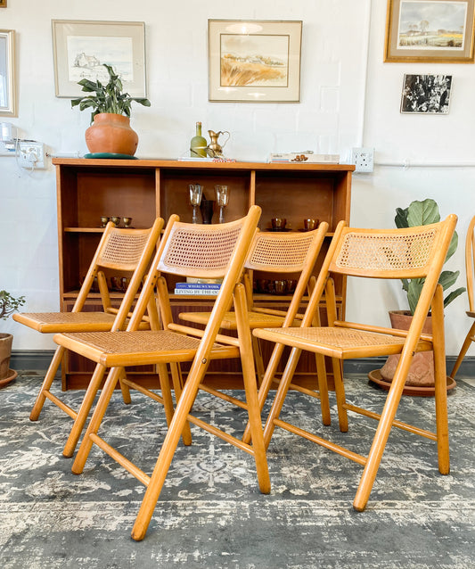Set of 4 Retro Cane and Beechwood Folding Chairs