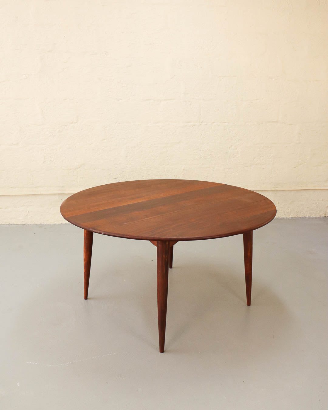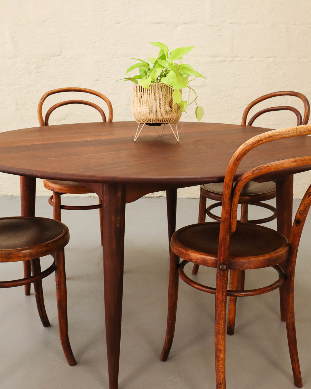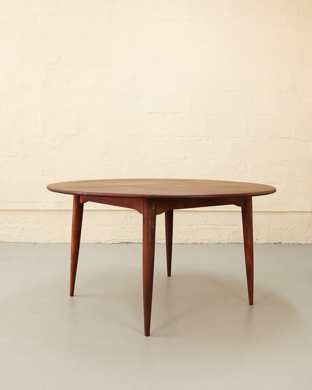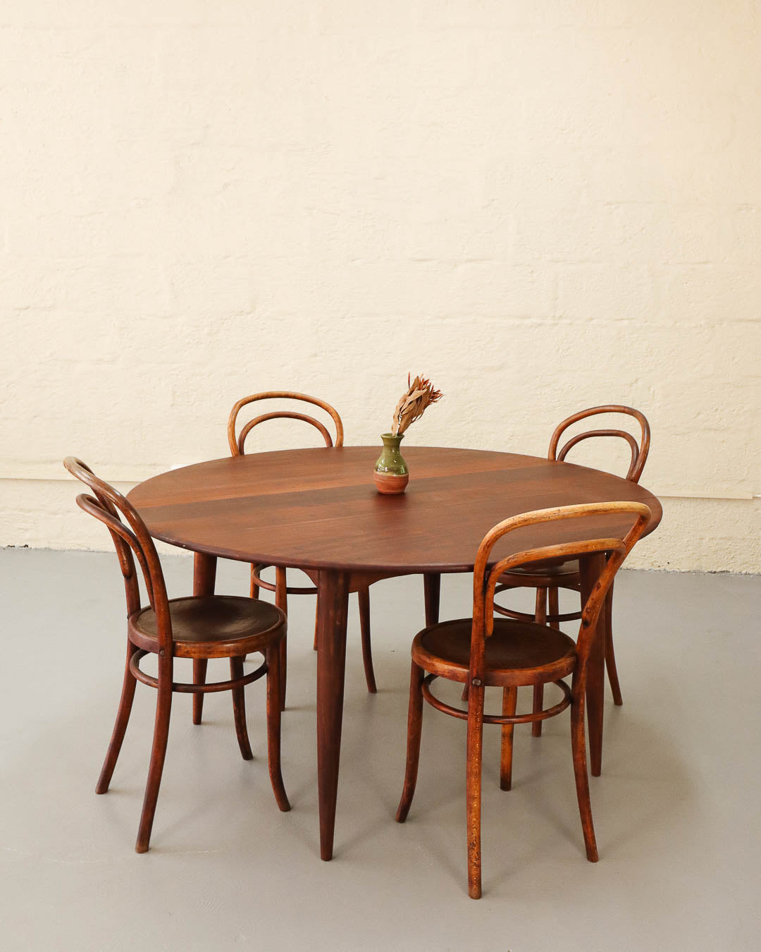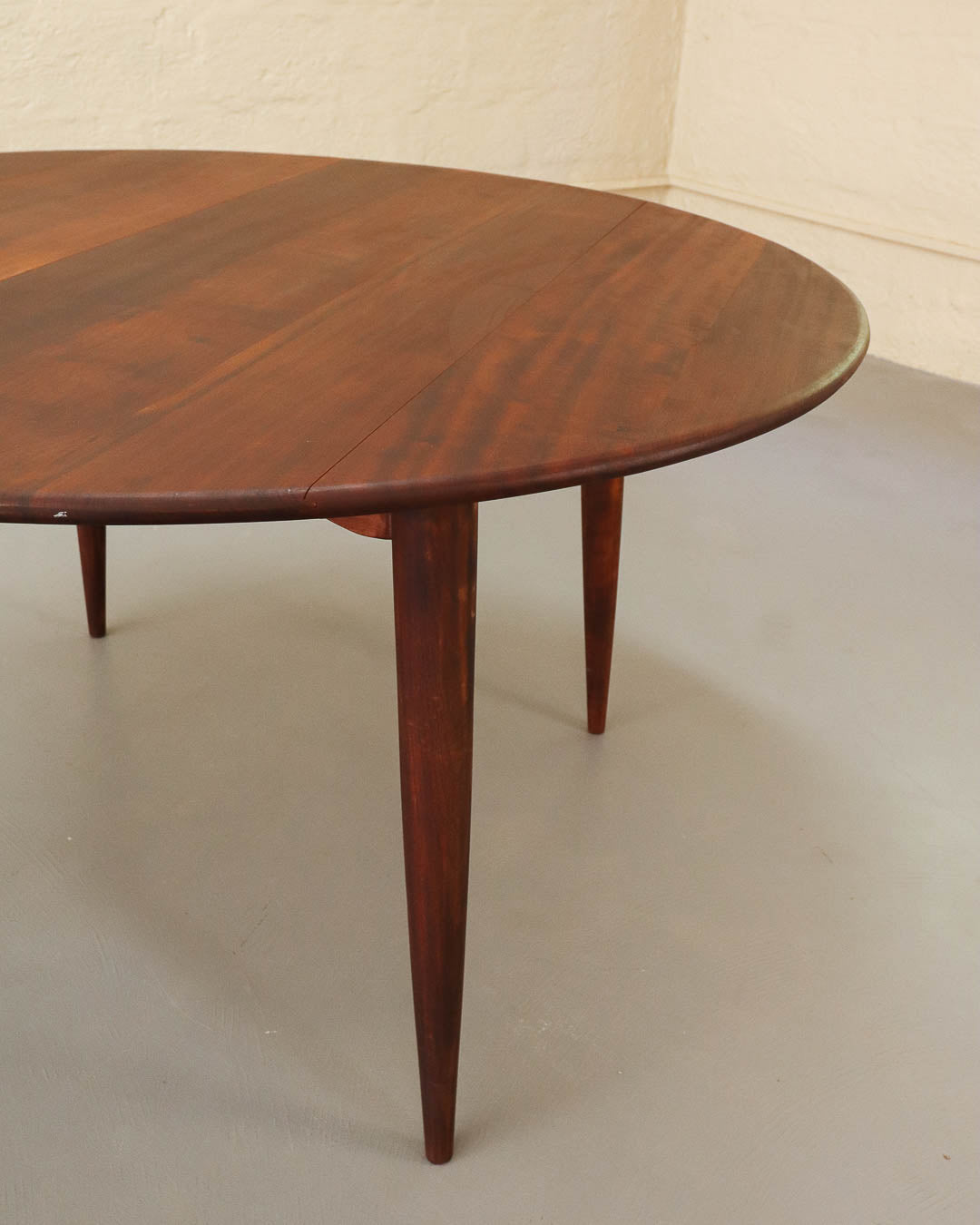 Exceptional solid imbuia dining table by renowned South African designer EE Meyer for Binnehuis, crafted in the 1960s. This classic mid-century rounded 6-seater comes with an impressively large additional top that extends over the frame, comfortably seating 8 to 10 people. The elegant tapered legs and refined lines speak to Meyer’s signature style. Lightly restored to preserve its original character, this table is both a striking centrepiece and a highly collectable example of South African mid-century furniture.