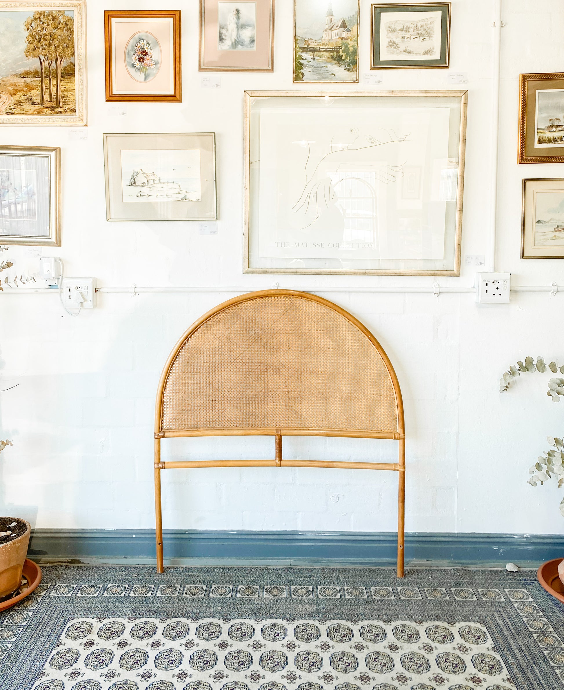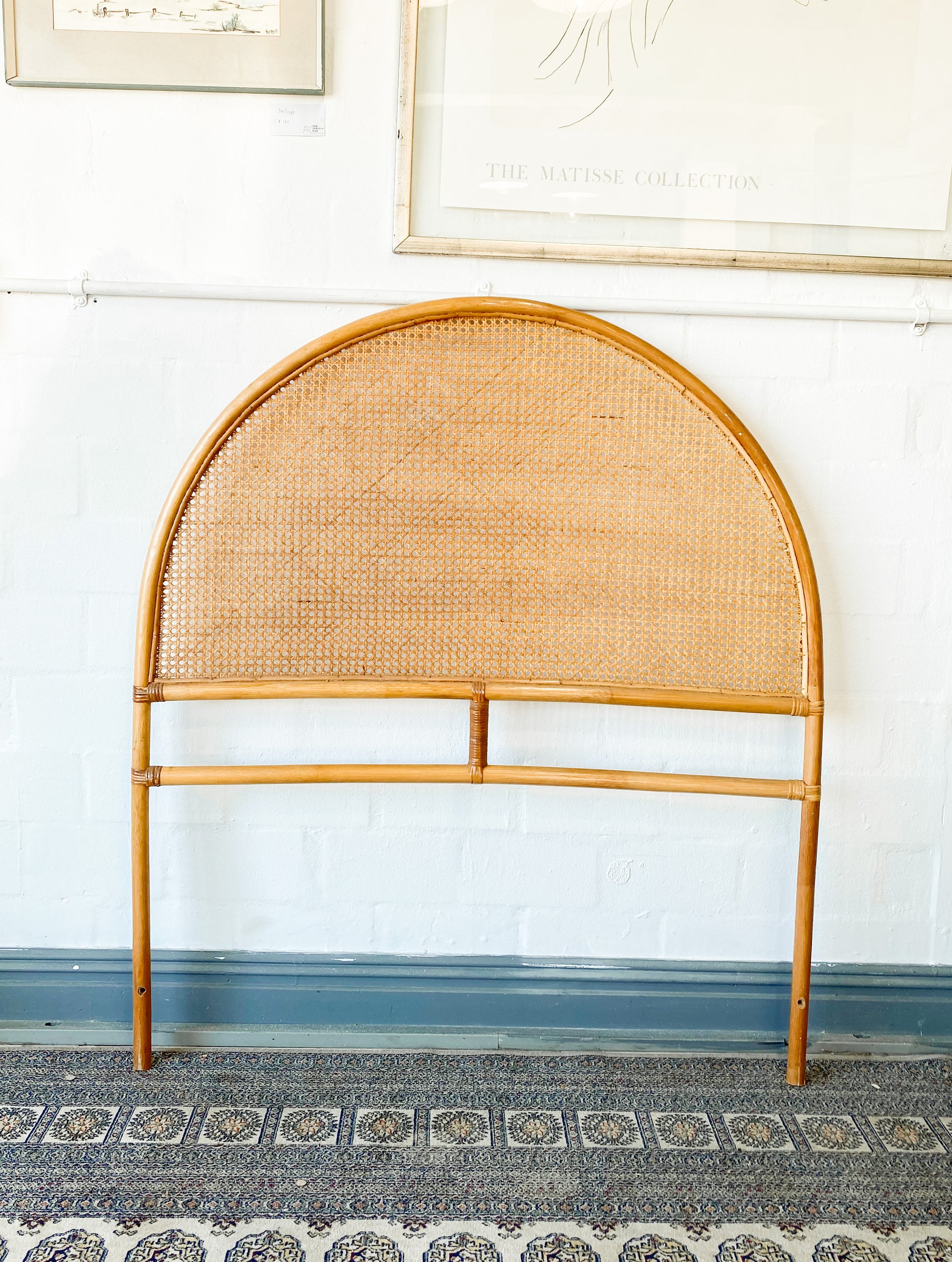 This dreamy bohemian headboard features a dome cane web design adorned with graceful rattan accents. Its airiness and lightness add a sense of enchantment to any bedroom. The aesthetic will elevate any room's ambience.