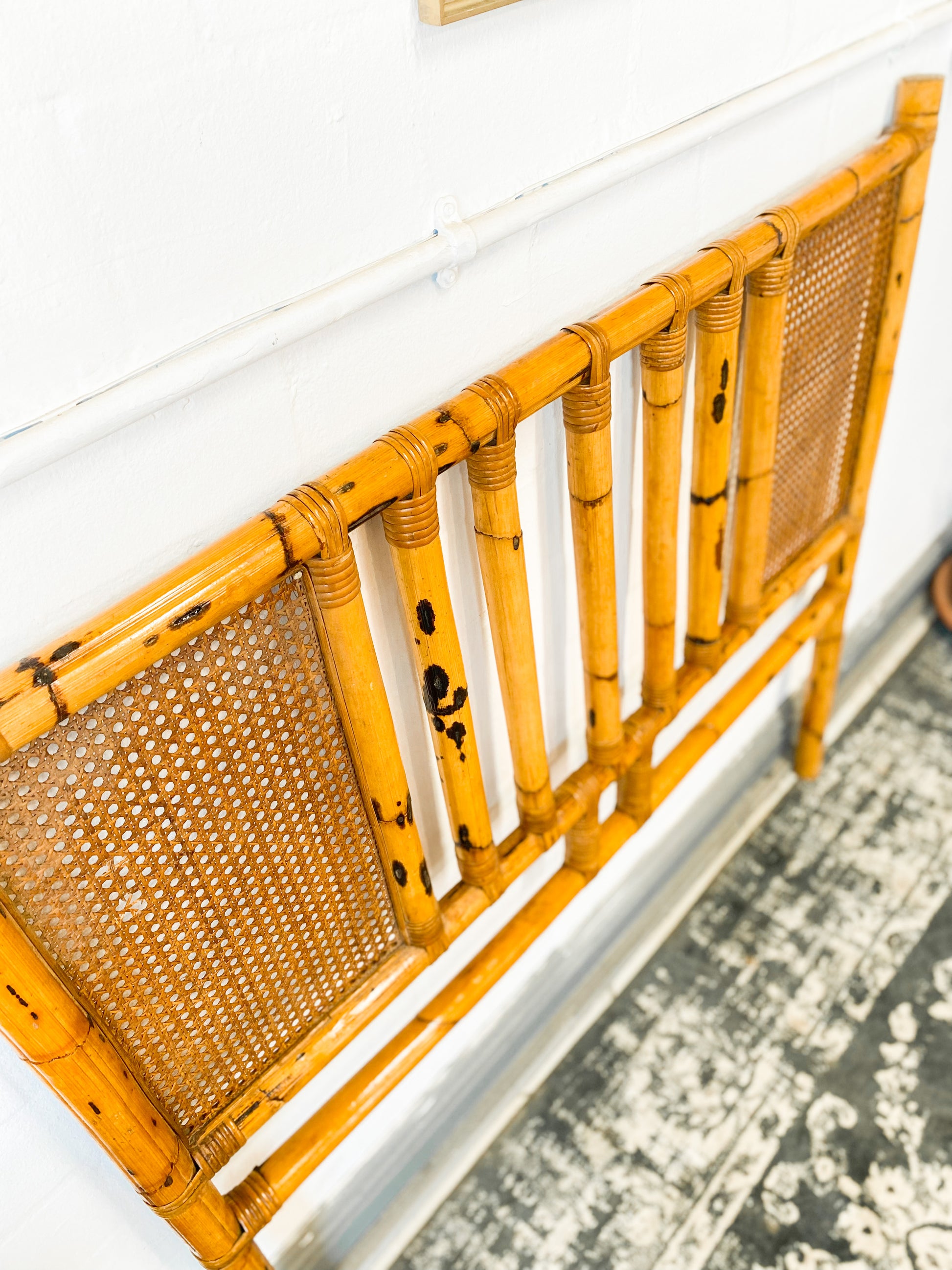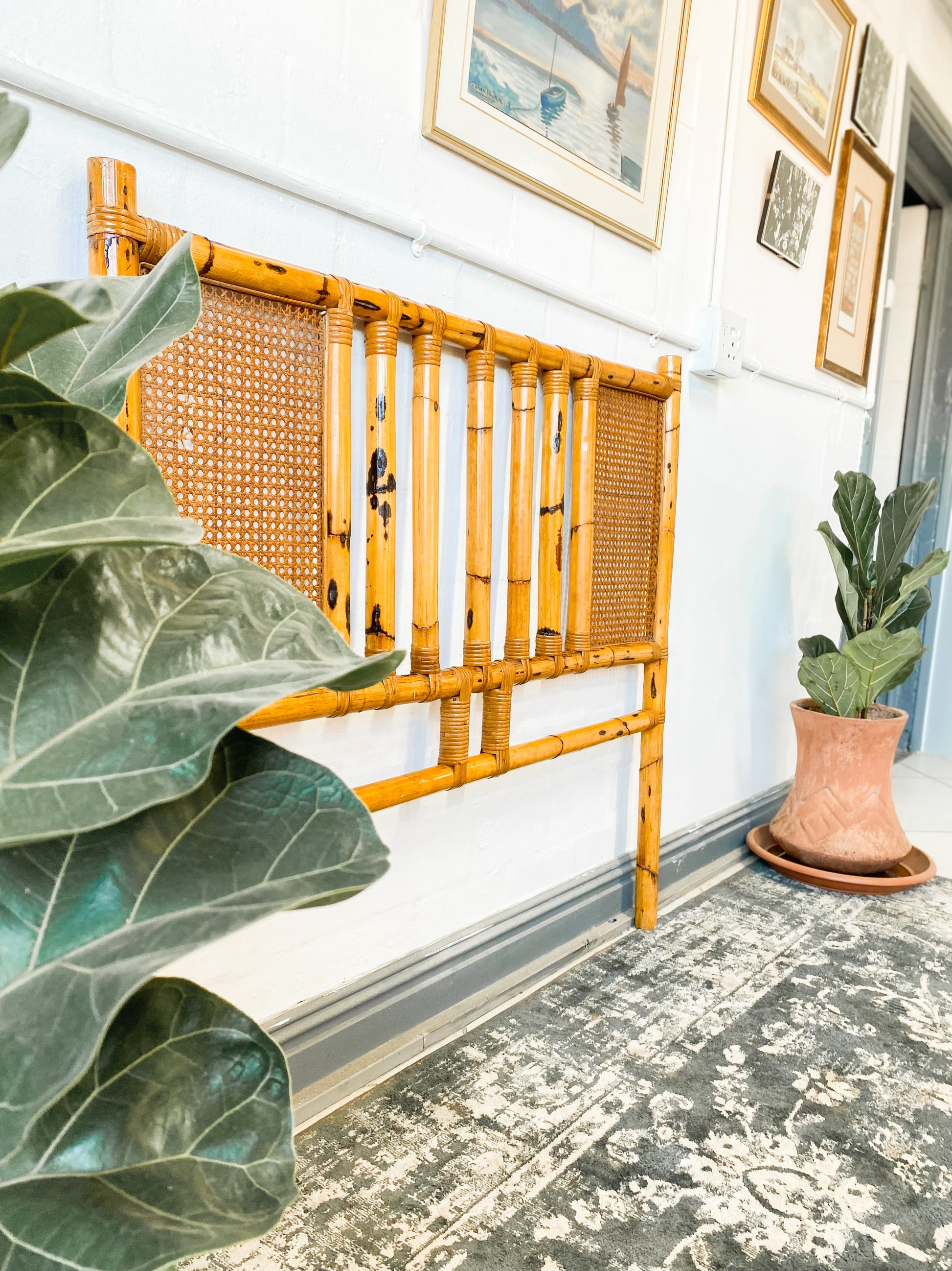Create an air of enchantment in your bedroom with this bohemian-style headboard. Featuring a slatted cane web design, graced by rattan accents, it will bring an elegant, whimsical atmosphere to your room. Elevate your space with this dreamy piece.