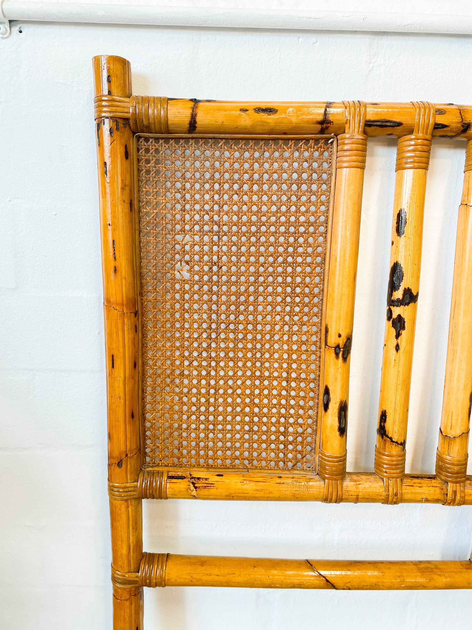 This piece has a small hole in the cane webbing on the left block. Rather than diminishing its beauty, these age-related characteristics imbue the set with a distinctive and captivating personality.