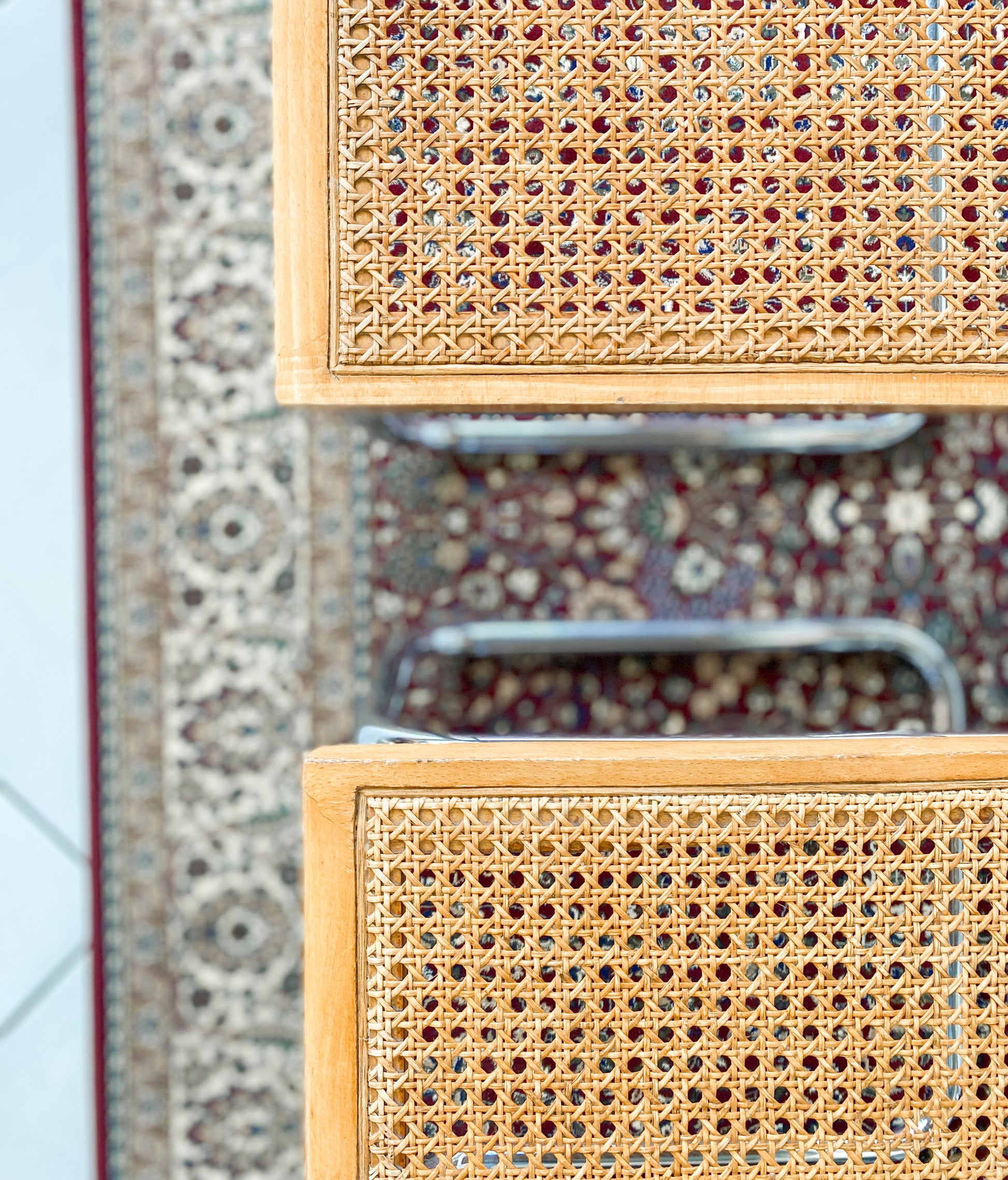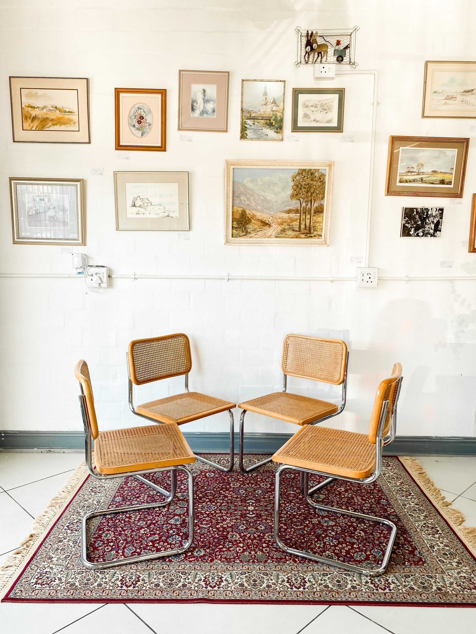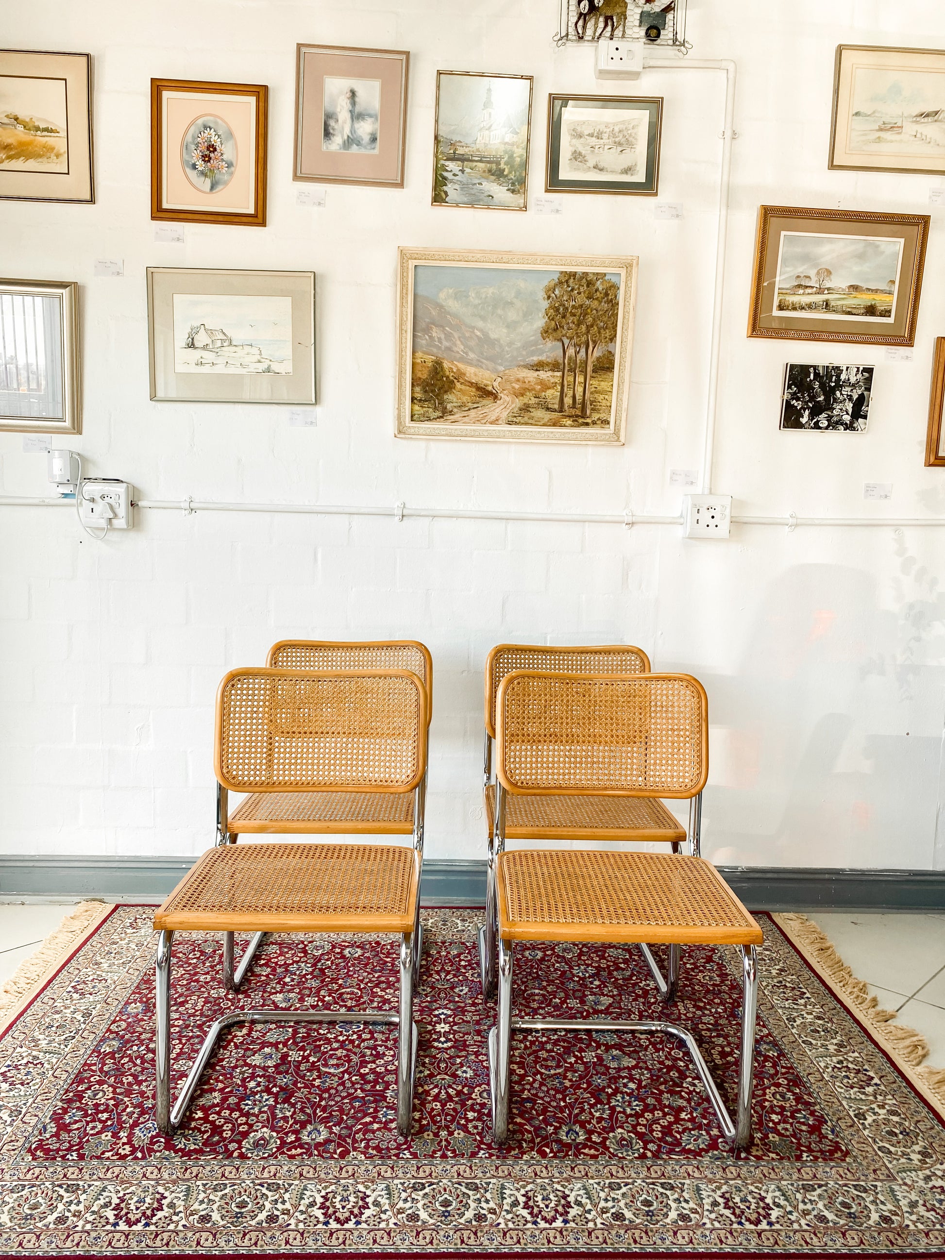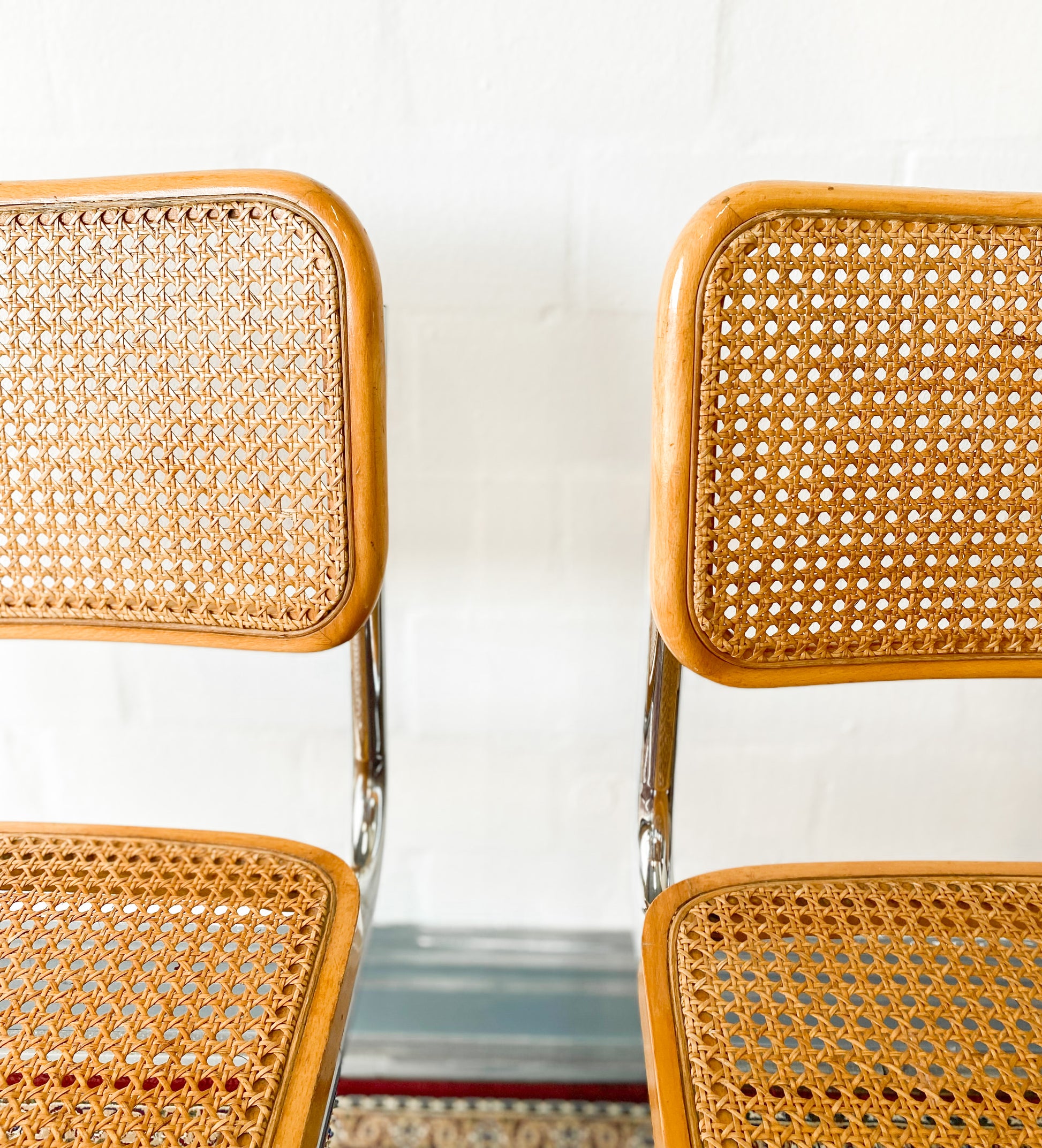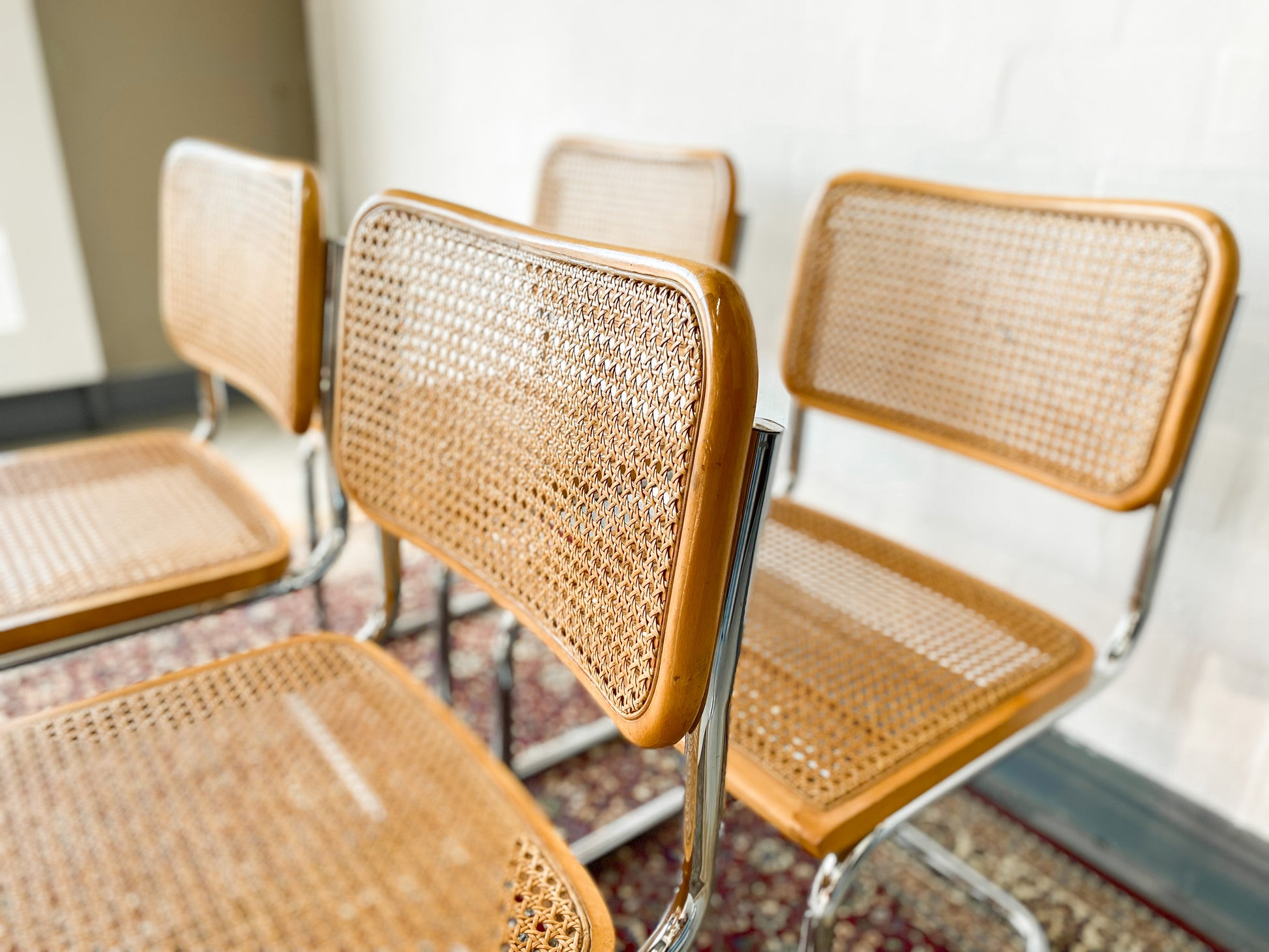 These chairs are true icons of the Mid-Century Modern era, designed by the legendary Marcel Breuer with the goal of creating a chair that would give the illusion of floating. The use of reflective chrome and airy cane webbing achieves this effect beautifully, making these chairs both stunningly beautiful and incredibly comfortable to sit in. Whether you're looking to add some vintage charm to your home or office, or you're a collector of Mid-Century Modern design, this set of Cesca chairs is an absolute must-have.