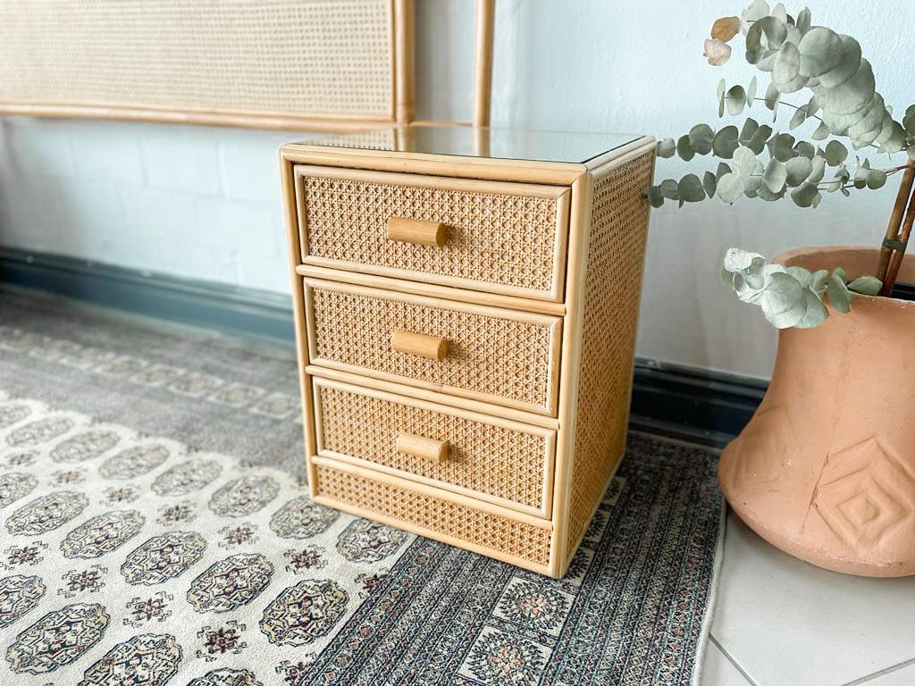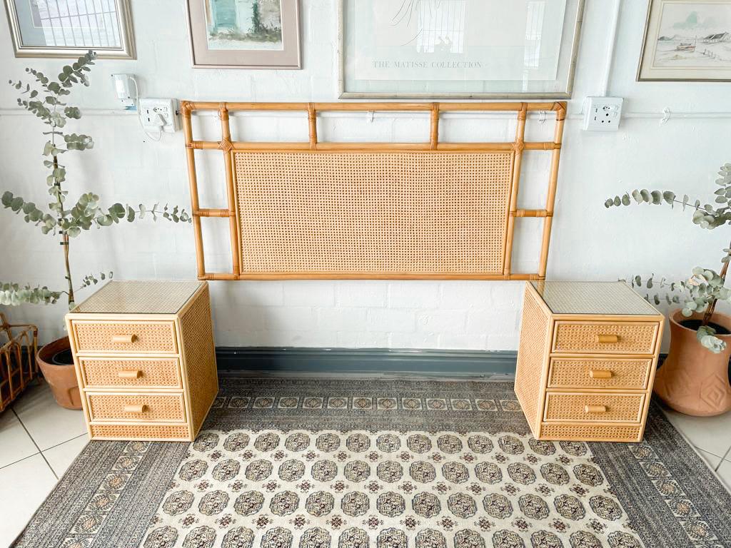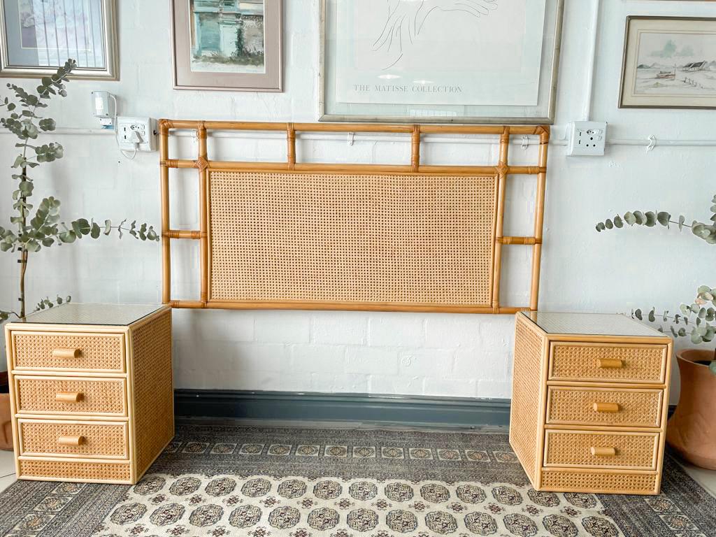 Includes a Queen Rectangular shaped headboard and 2 X Bedside tables consisting of 3 drawers.
