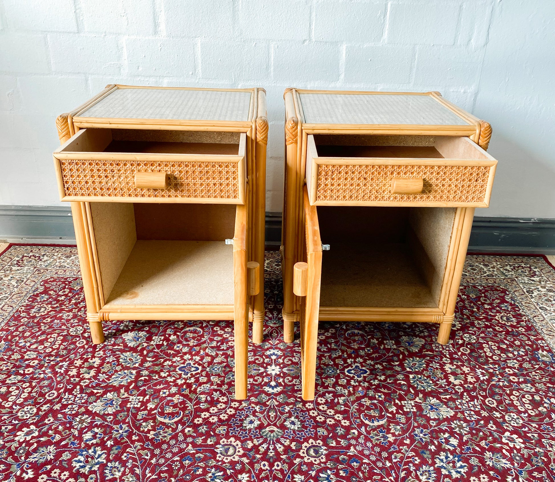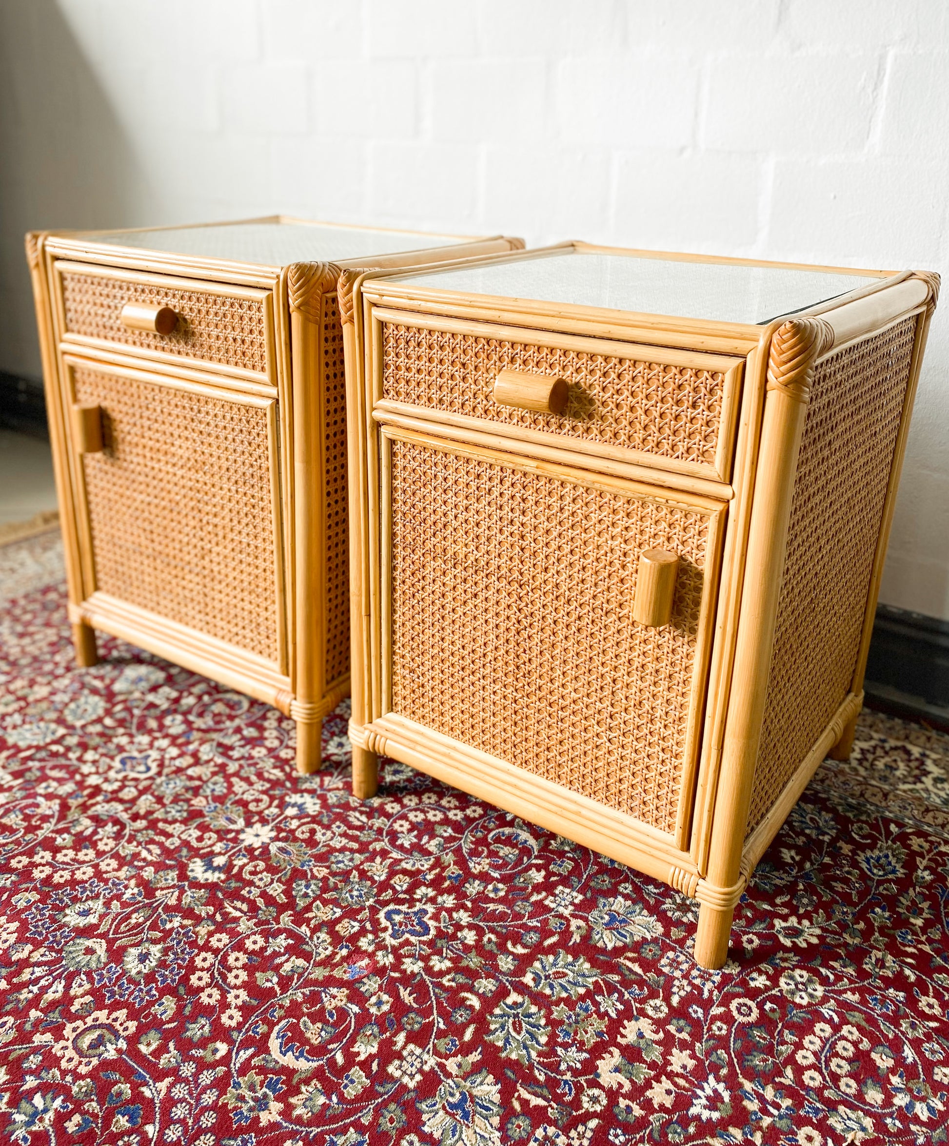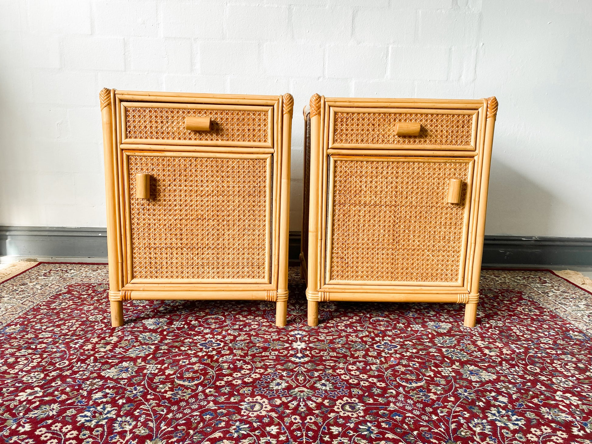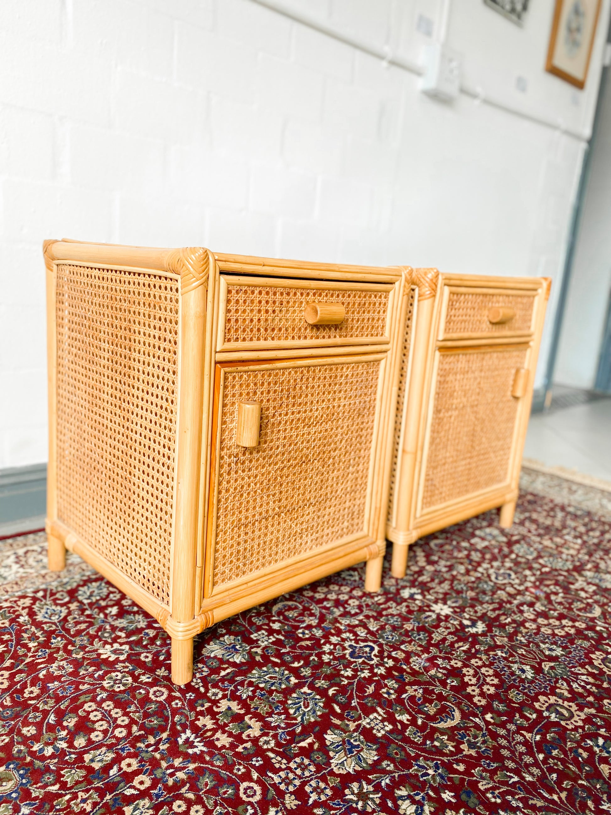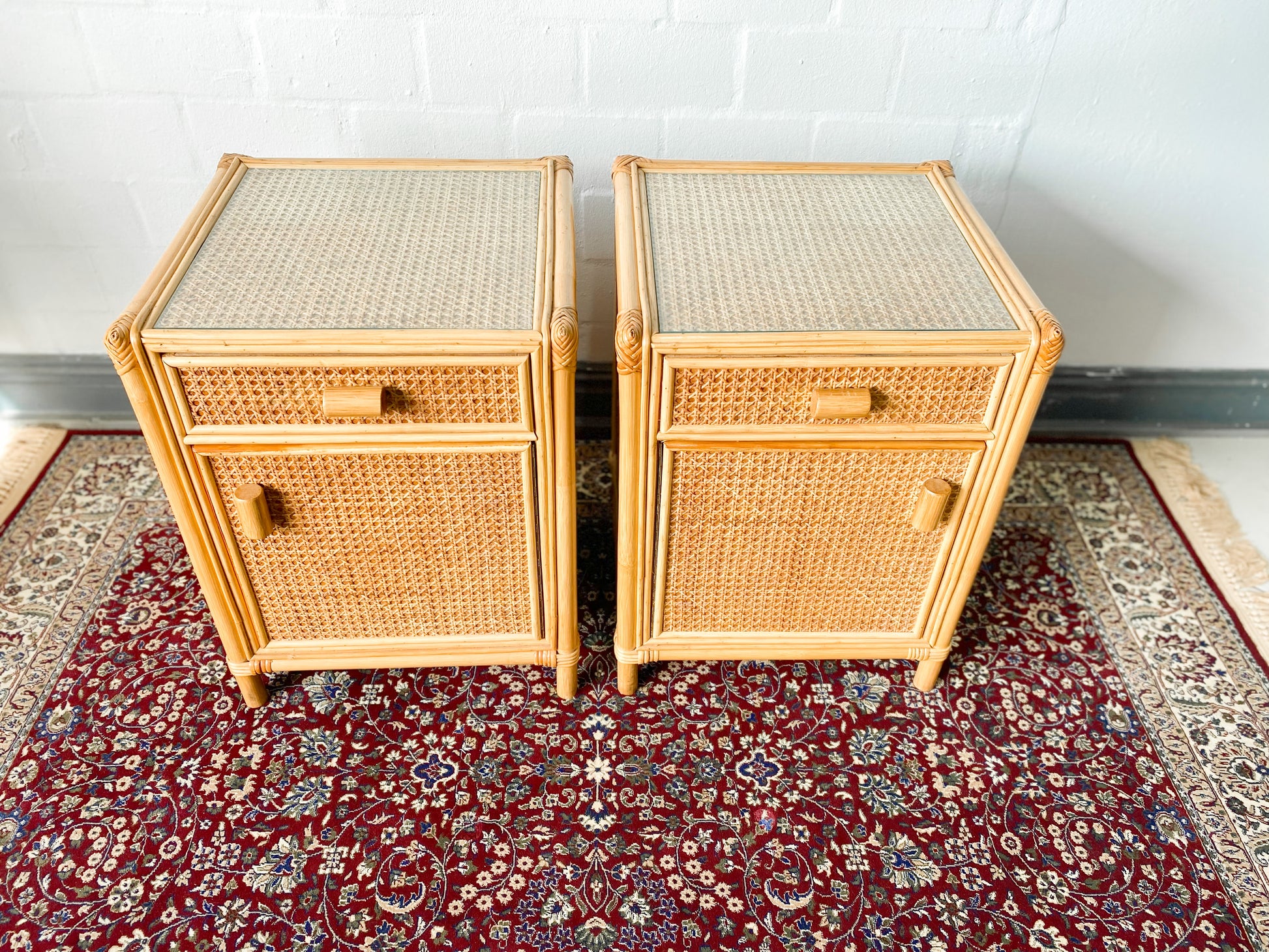 These Cane Pedestals provide a light and airy design to brighten and freshen up your bedroom space. Each features a generous drawer and cabinet space that can easily handle all your bedroom storage needs.