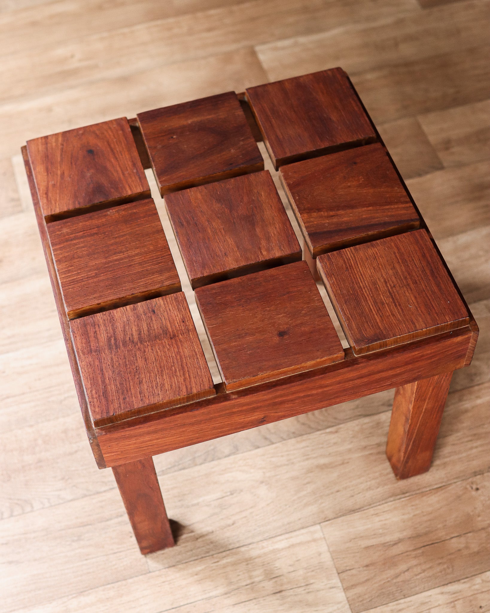 Beautifully crafted cubist-style low side table made from solid wood, designed to highlight the natural grain across each geometric block. The sculptural form gives them a striking, modern look while remaining practical and versatile. It would be perfect beside a sofa, armchair, or even as a bedside table. Recently refurbished and sealed to protect and enhance the wood’s texture, this table is both functional and visually captivating, fitting seamlessly into a variety of interior styles.