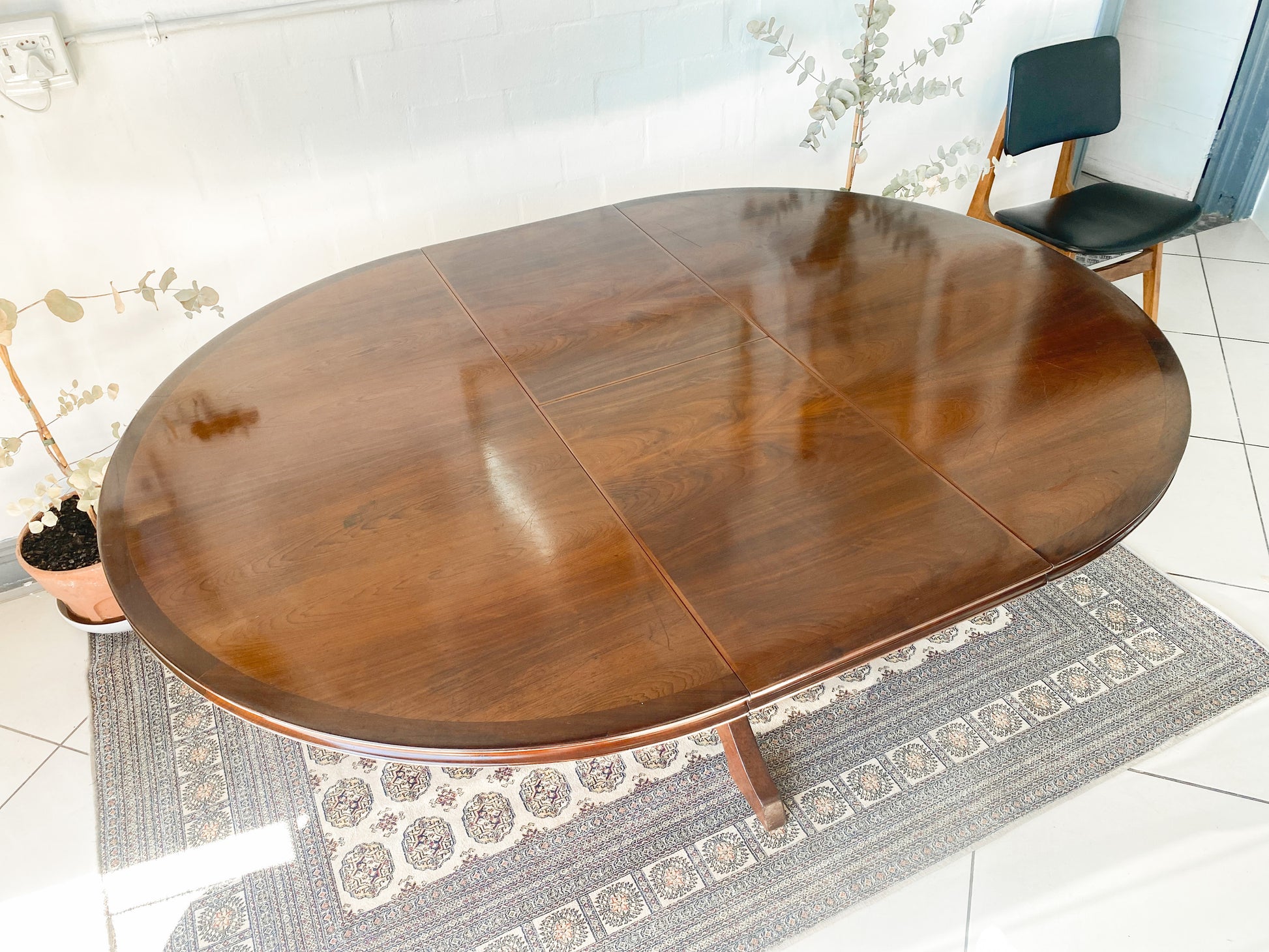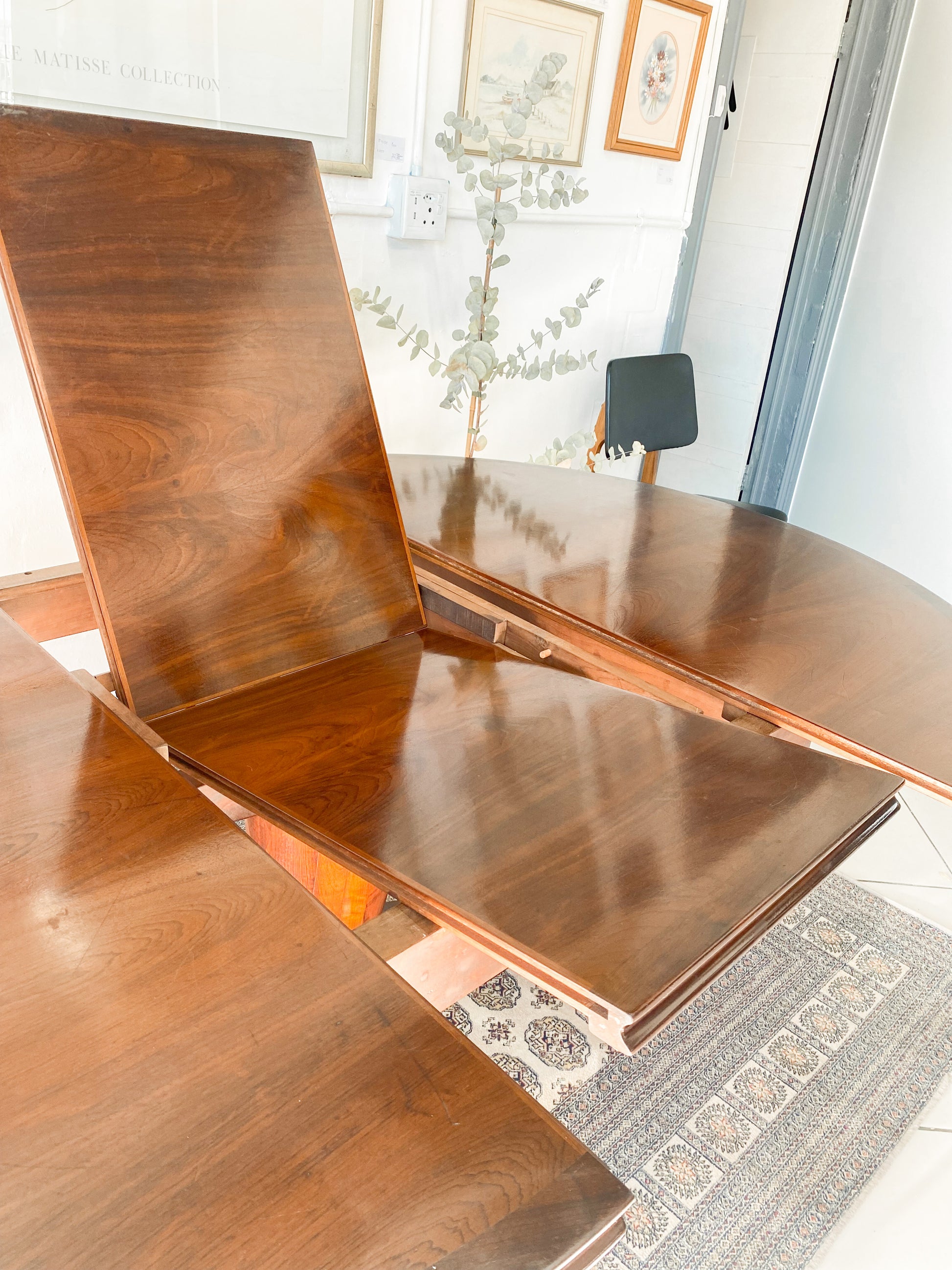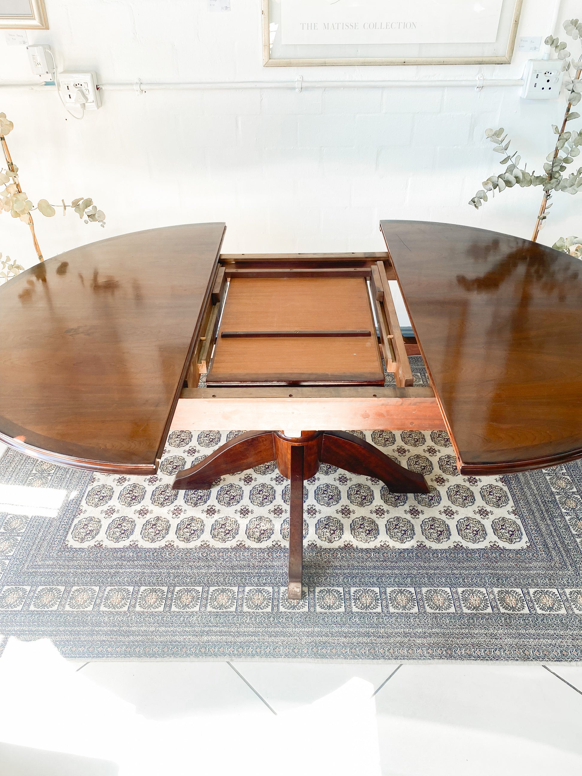 Elegant Extendable Imbuia 6-8 seat dining table made by premium South African designer EE Meyer.