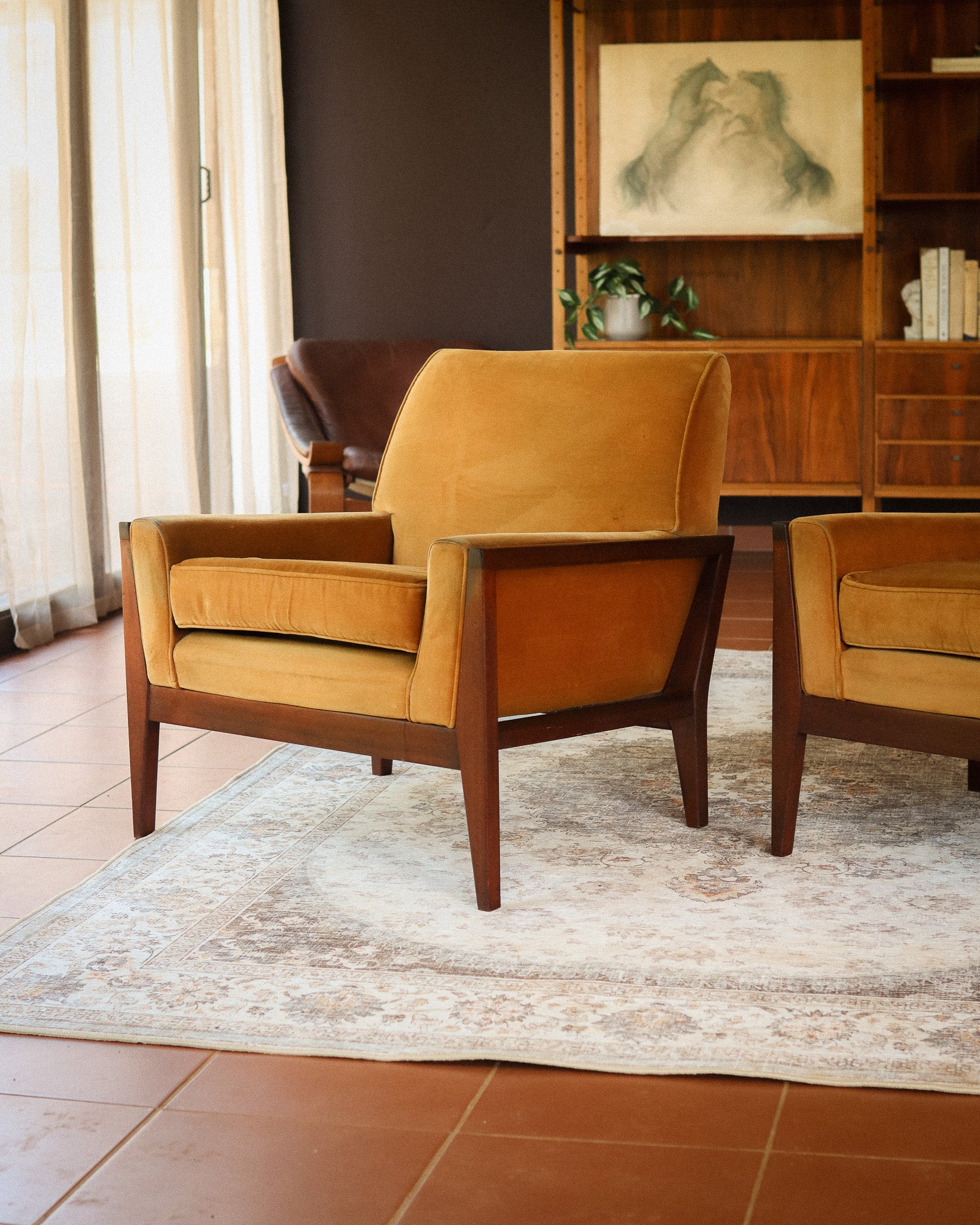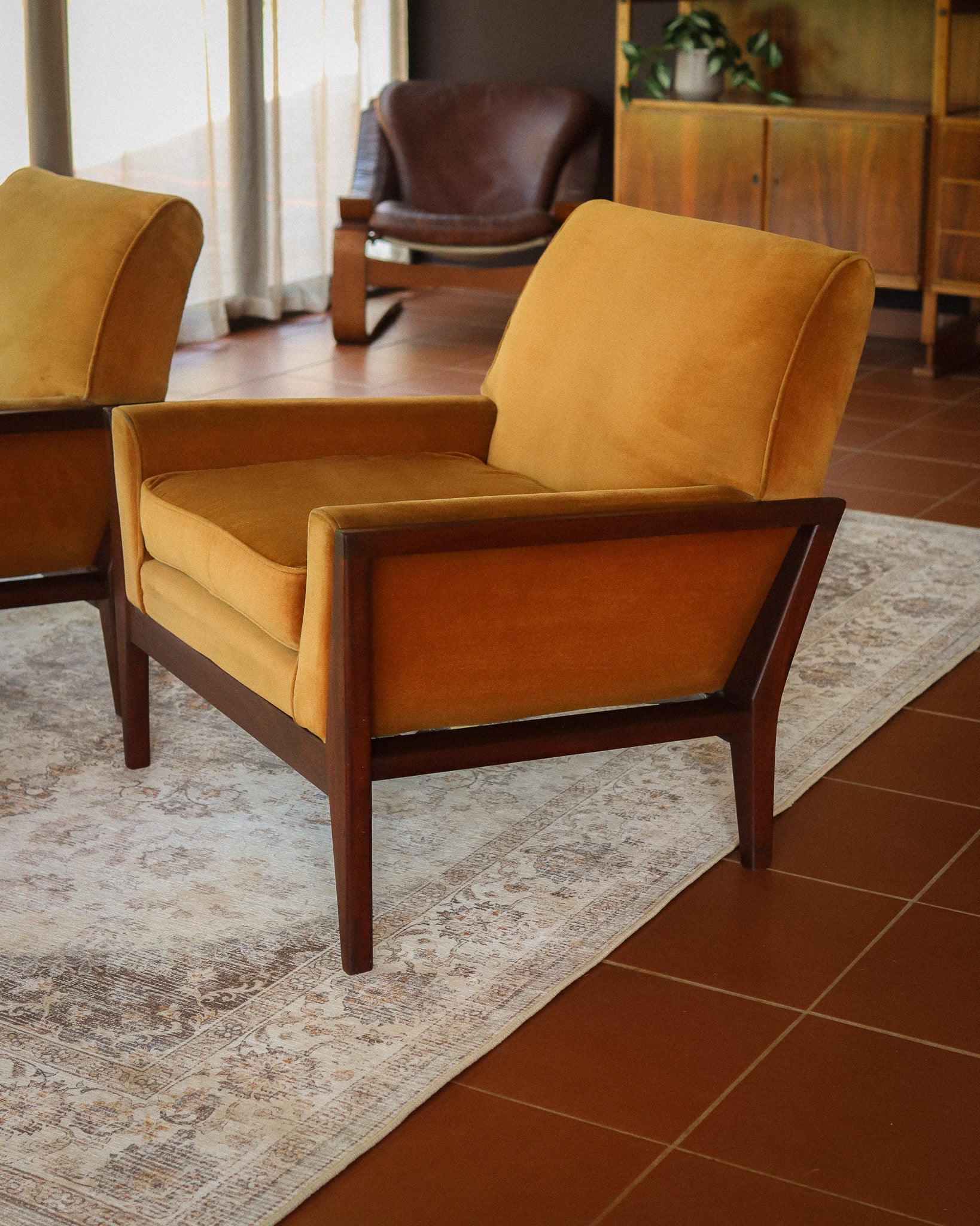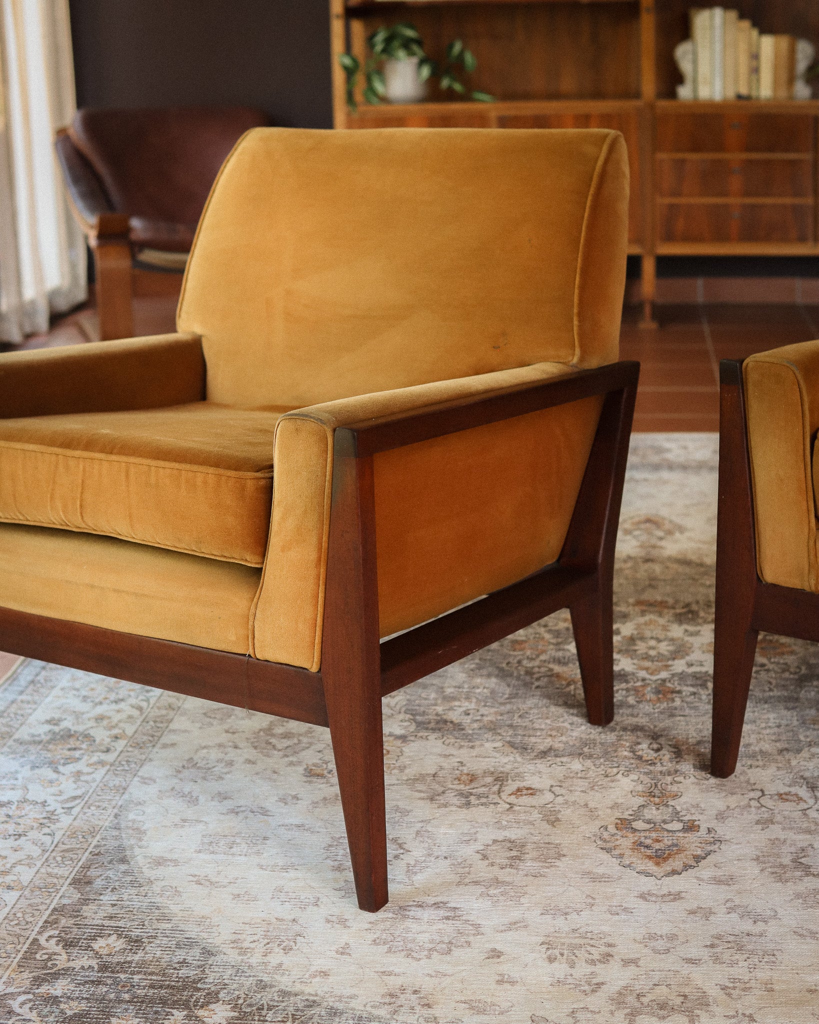 Pair of Mid-Century Velvet Armchairs