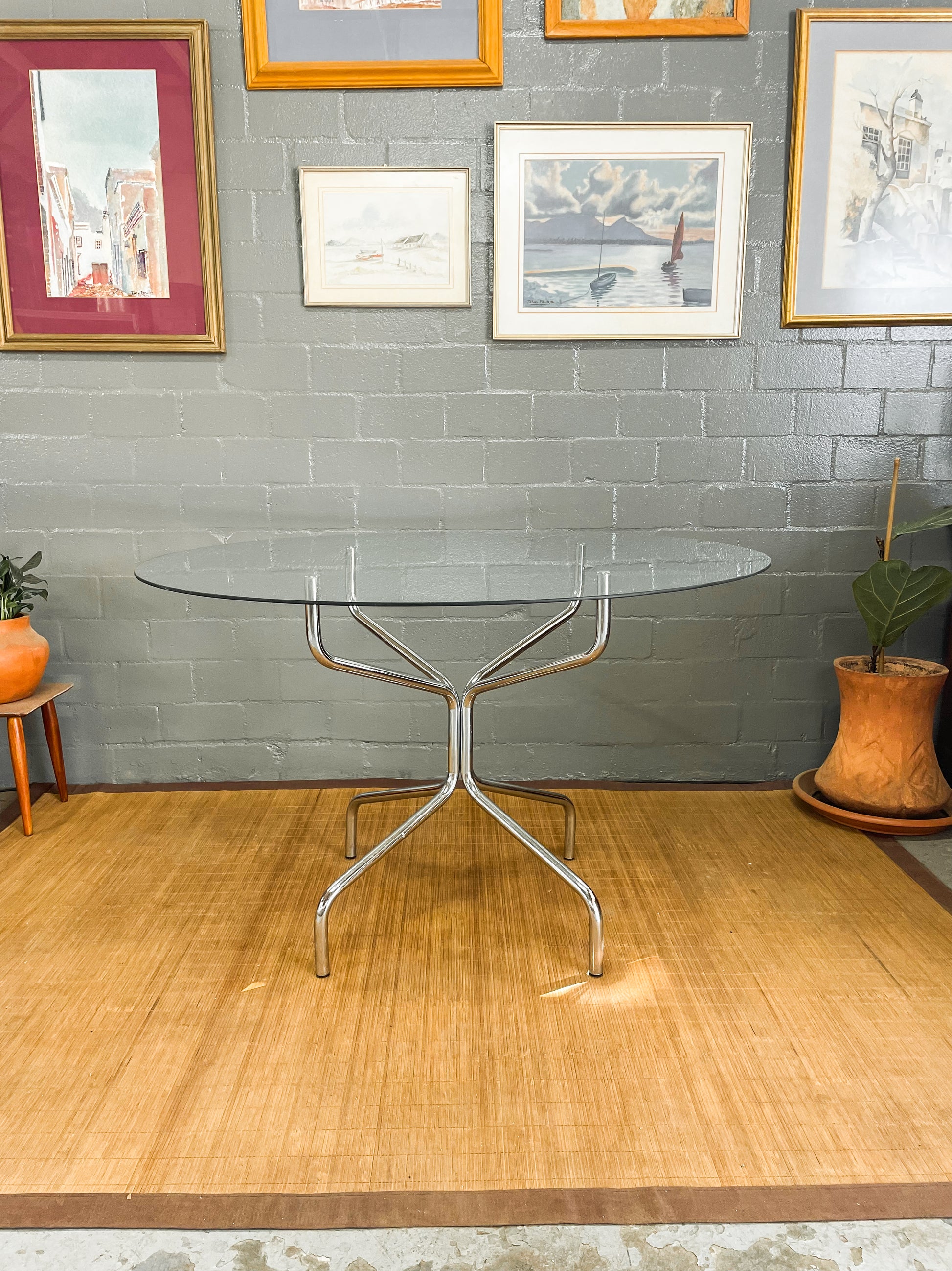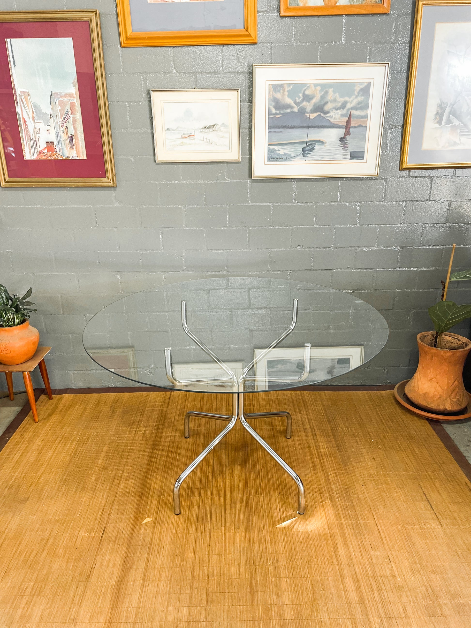 Please take note the glass top is currently loose from the chrome frame for transportation purposes we will gladly secure it on the frame once its In its new home.